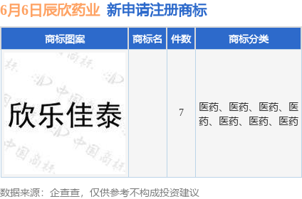 今年以来辰欣药业股份有限公司新申请注册商标13件,截止目前公司共持有注册商标447件,另有24件商标尚在注册申请中。