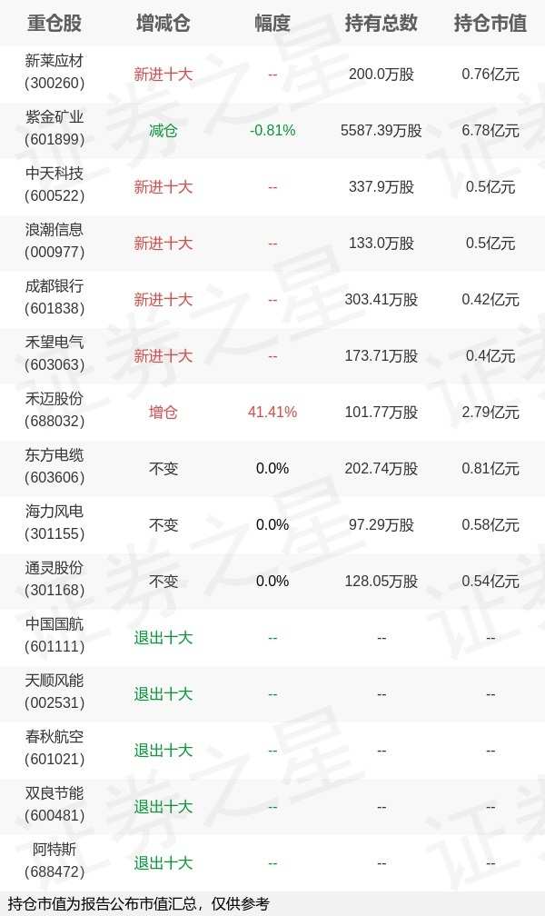 证券之星消息,10月25日博时基金旗下过钧管理的博时信用债券投资基金公布三季报,近1年净值增长率-2.2%。与上一季度相比,该基金前十大重仓股新增新莱应材,中天科技,浪潮信息,成都银行,禾望电气;其中紫金矿业持仓占比8.78%,为该基金第一大重仓股;中国国航,天顺风能,春秋航空,双良节能,阿特斯等退出前十大重仓股;详细数据如下: