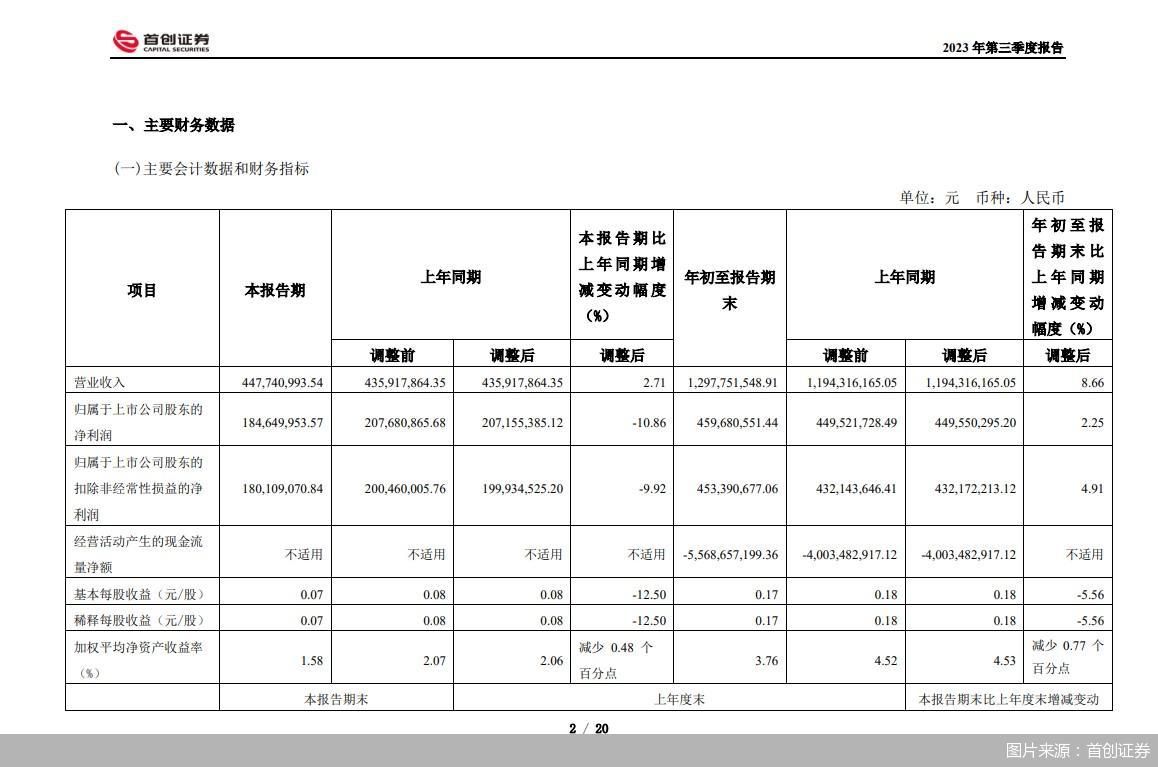 北京商报讯(记者 李海媛)10月27日,首创证券发布2023年第三季度报告。数据显示,2023年前三季度,首创证券实现营业收入12.98亿元,同比增长8.66%;归属于上市公司股东的净利润4.6亿元,同比增长2.25%。