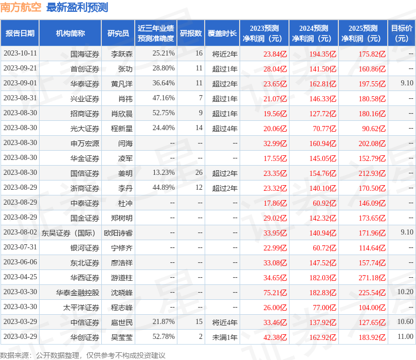 浙商证券股份有限公司李丹,卢骁尧近期对南方航空进行研究并发布了研究报告《23Q3盈利超19Q3,航空大周期拐点已现》,本报告对南方航空给出买入评级,当前股价为6.09元。
