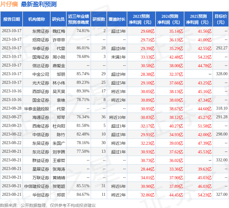 盈利预测与投资建议:公司核心产品片仔癀具备稀缺性,新产品安宫牛黄丸竞争优势明显,化妆品业务表现向好。根据公司业绩披露和基本面分析,调整盈利预测,预计 2023/2024/2025 年收入为 105.42 亿元/124.50 亿元/146.49 亿元,对应归母净利润 31.38 亿元/37.28 亿元/43.50 亿元,对应 EPS5.20 元/股、6.18 元/股、7.21 元/股,对应 PE为 48.32/40.67/34.85(对应 2023 年 10 月 17 日收盘价 251.29 元),维持“买入”评级。