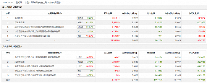 具体来看,机构买入3014.44万元,卖出1496.02万元,合计净买入1518.42万元。此外,知名游资现身龙虎榜,小鳄鱼净卖出3082.93万元。此外,申万宏源证券有限公司上海静安区昌化路证券营业部、深股通专用分别卖出7982.74万元、5141.55万元;深股通专用、东方财富证券拉萨金融城南环路证券营业部分别买入2911.99万元、2174.37万元。