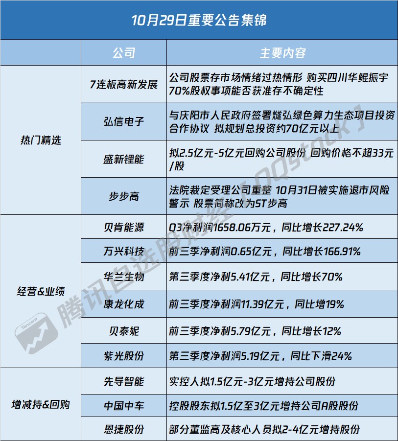 公告精选|7连板高新发展发布股票交易异常波动风险
