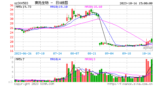 二级市场上,赛托生物10月16日收跌3.27%,报19.79元/股,总市值为37.54亿元。