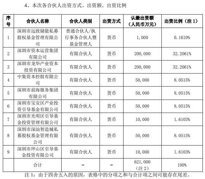 中集资本控股、深圳资本集团、远致储能、深圳市龙华产业资本投资有限公司、深圳市前海服务集团有限公司、深圳市宝安区产业投资引导基金有限公司、深圳市光明区引导基金投资管理有限公司、深圳市深汕智造城私募股权基金管理有限公司和深圳市坪山区引导基金投资有限公司等 9 方拟共同签署《深圳市新型储能产业股权基金合伙企业(有限合伙)合伙协议》。