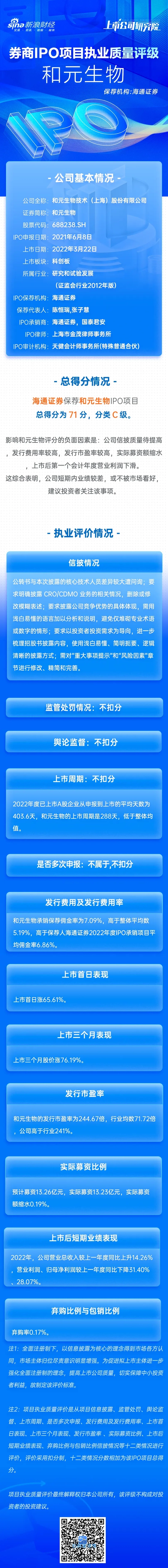 海通证券保荐和元生物IPO项目质量评级C级 发行市盈率高于行业241% 上市首年业绩“变脸”