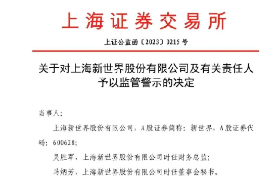 10月17日,新世界公司及其相关责任人收到了上交所的监管警示。