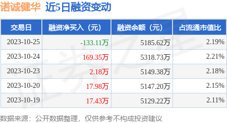证券之星消息,10月25日,诺诚健华(688428)融资买入80.35万元,融资偿还213.46万元,融资净卖出133.11万元,融资余额5185.62万元。