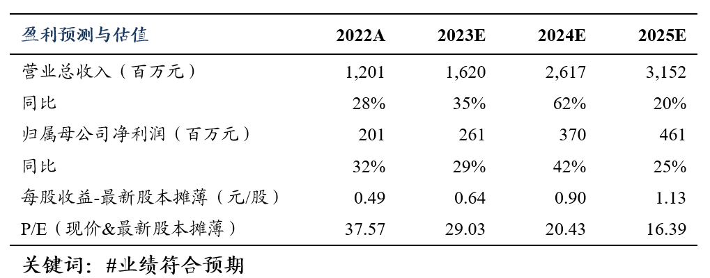 盈利预测与投资评级:我们维持公司23-25年归母净利润预测为2.6/3.7/4.6亿元,当前股价对应PE为29/20/16倍,维持“买入”评级。