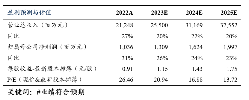 事件:公司发布2023年三季报,前三季度实现营业收入177.23亿元(+19.61%,同比,下同);归母净利润11.74亿元(+27.20%);扣非归母净利润11.64亿元(+26.91%)。单Q3实现营业收入57.31亿元(+12.44%);归母净利润2.57亿元(+22.90%);扣非归母净利润2.66亿元(+25.02%)。业绩符合预期。