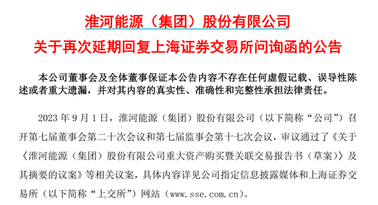 9月中旬收到问询函后,淮河能源曾分别于10月10日和10月16日各申请过延期回复。前两次的理由和这次一样。