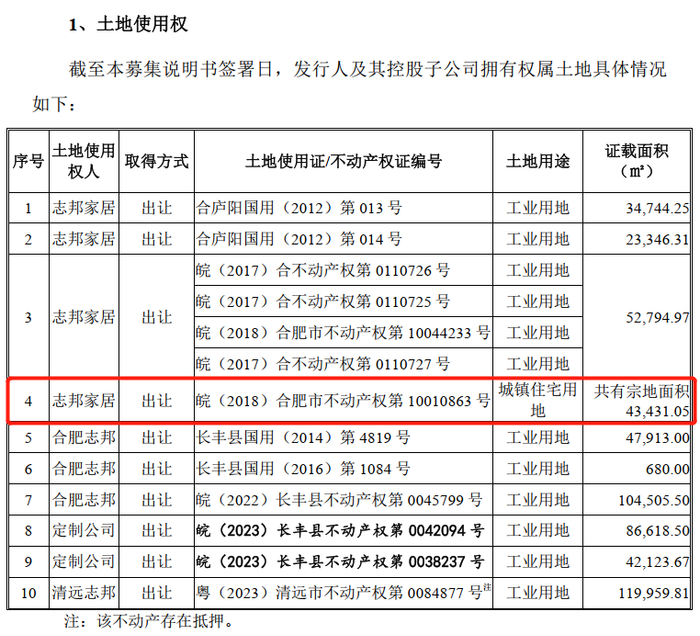 随着近年来建设项目的不断增多,志邦手头获得不少土地使用权。据其披露,它在合肥益力檀宫拥有一套建筑面积417.8平方米的房产,不动产权证号为“皖(2018) 合肥市不动产权第 10010863 号”。据悉,益力檀宫为合肥豪宅项目。