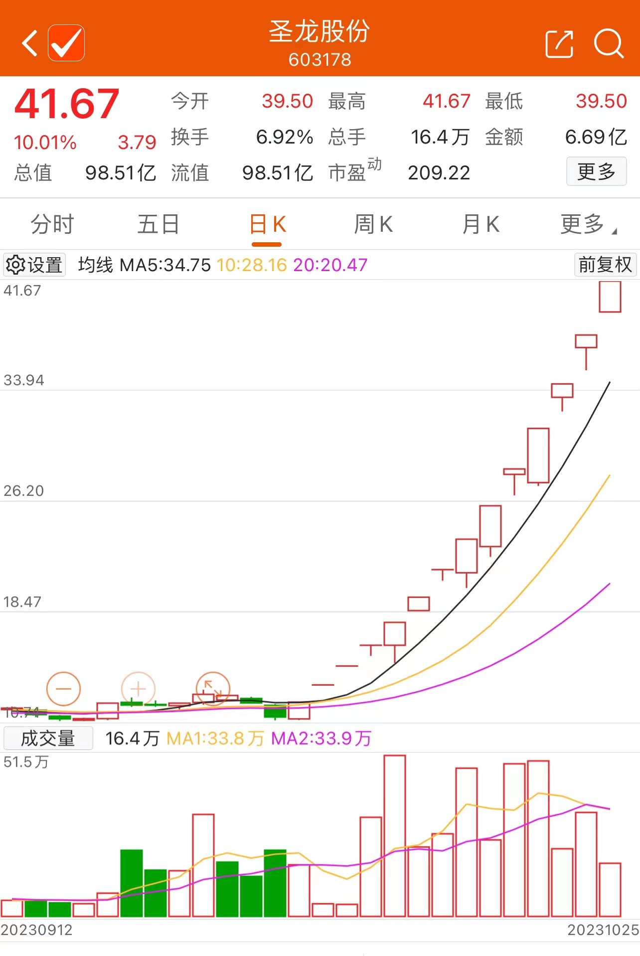 上证报中国证券网讯 10月25日上午,圣龙股份再度涨停,实现14连板。