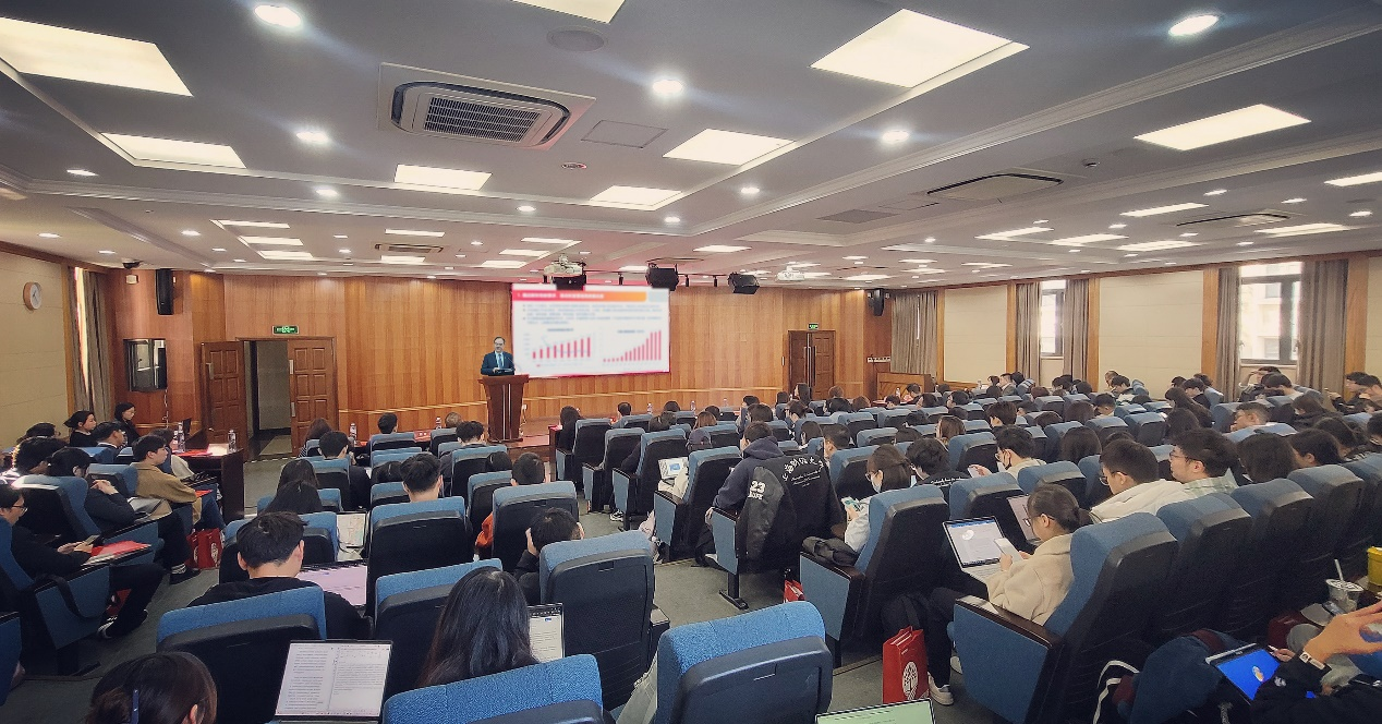 金文忠董事长以“推动注册制走深走实,更好服务实体经济”为主题为学生作本年度课程的第一讲。他结合当前热点、难点以及行业案例进行了深入浅出的讲解,并回答了现场提问,受到学生们的欢迎和肯定。