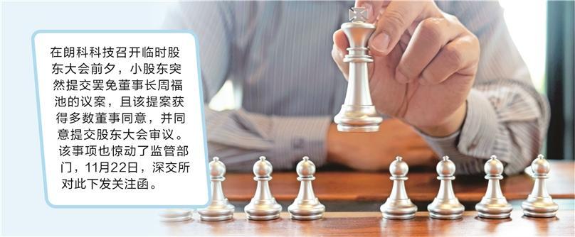 小股东罢免董事长周福池事项,也惊动了监管。11月22日,深交所下发关注函,要求朗科科技对相关事项进行回复。