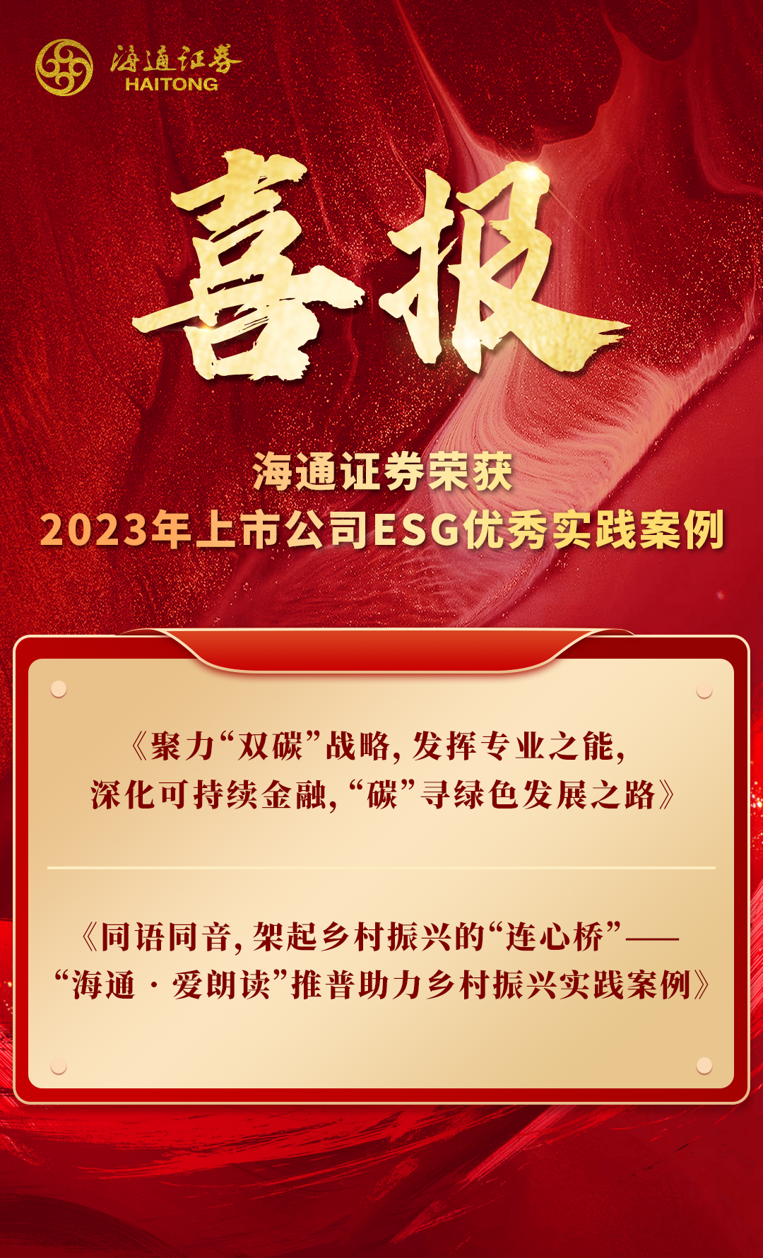 海通证券荣获两项2023年上市公司ESG优秀实践案例