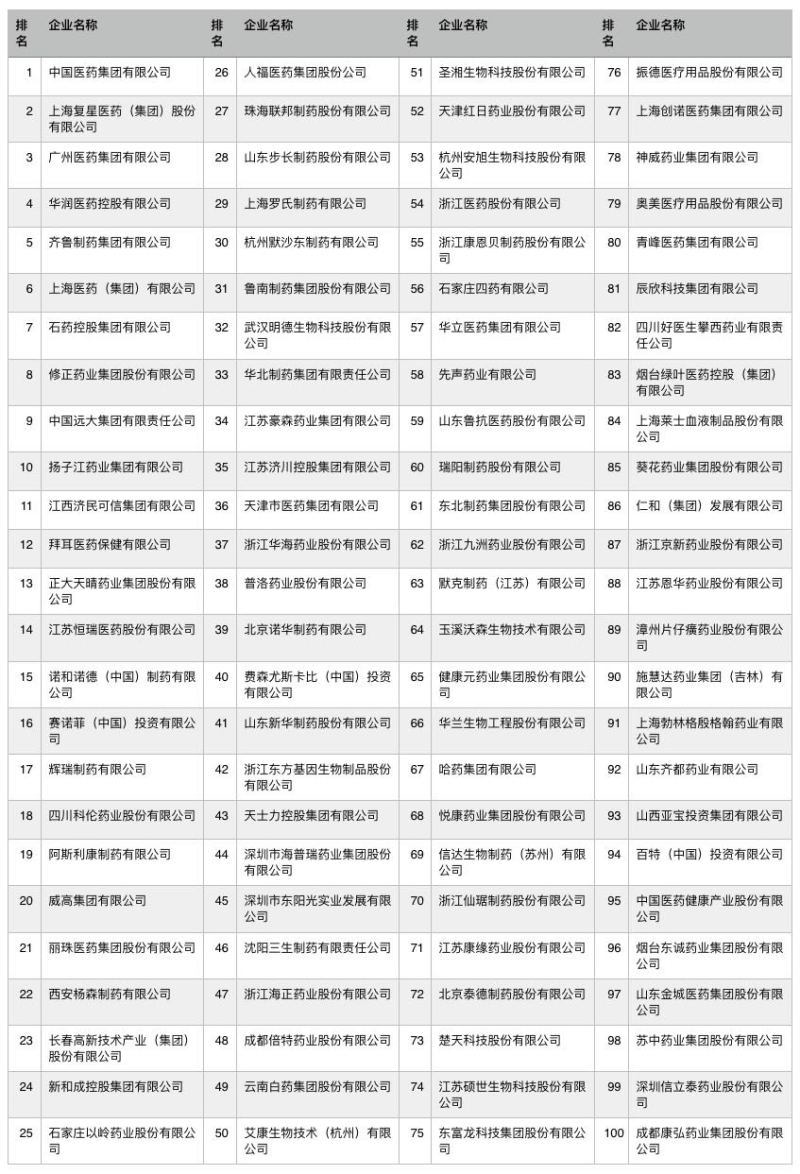 百强榜依据国家统计数据,并结合企业新药创新、合理布局、发展潜力、市场聚焦等指数,以工业企业法人单位为基础进行排名,是我国医药行业中最具权威性和社会影响力的专业评选之一。