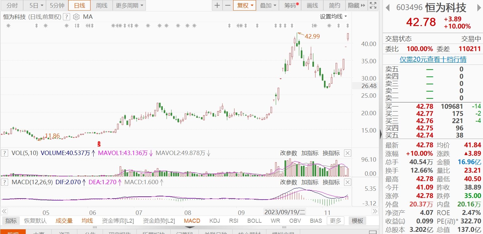 A股异动︱恒为科技涨停 中标21.12亿元中贝通信AI算力一体机采购项目
