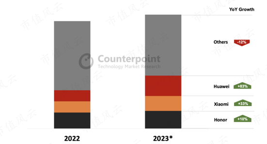 11月中旬,市场调查机构Counterpoint Research公布了各大厂商的10月成绩:华为手机当月销量同比增长83%,在各大厂商中遥遥领先。