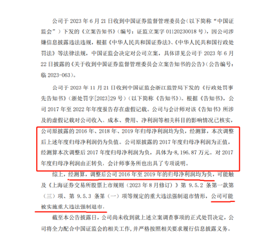可见,华仪电气当初的财务造假,目的也许是为了保壳。而造假事发后,如果触发了强制退市标准,退市恐怕就是大概率事件。