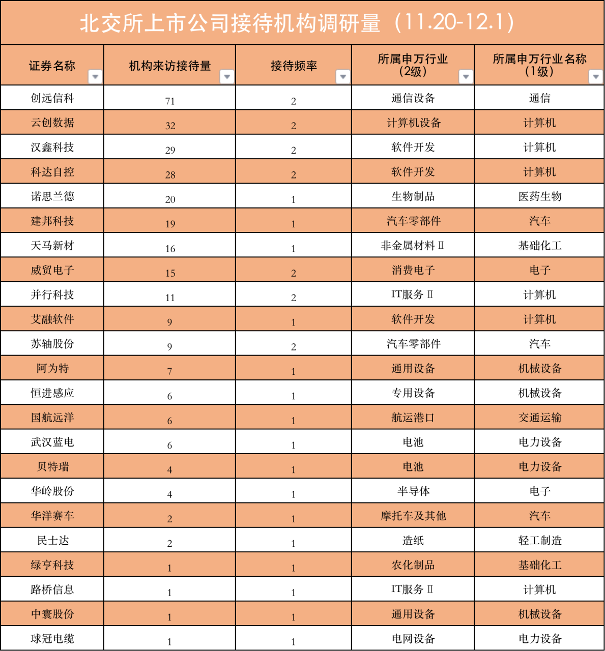 长安汽车供应链个股赫然在列!近两周北交所接待机构来访量居前热门股名单一览