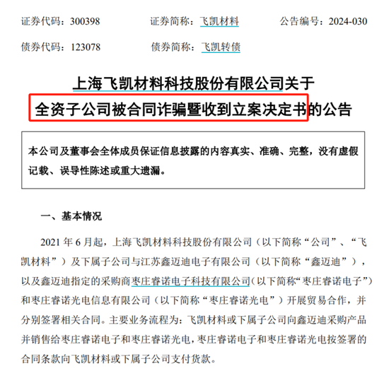 1.86亿元!飞凯材料自曝遭合同诈骗