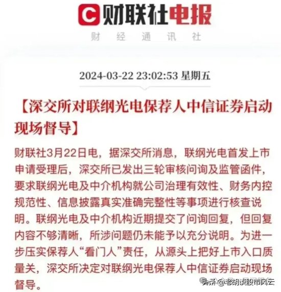 近期中信证券又开始作妖,在深交所对联纲光电IPO二次问询时竟然公开硬怼,举例别的公司大股东持股比例更高,甚至有的100%持股都可以上市,联纲光电才90%多,为什么不能上市?