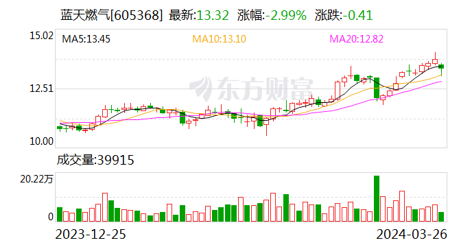 蓝天燃气2023年营收净利润双增长 拟10派8.5元