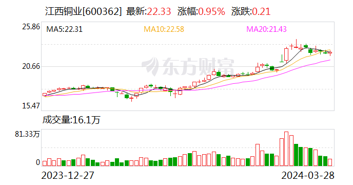 一批新项目释放产能 江西铜业2023年营收净利双增长