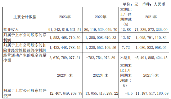挖贝网3月26日,安徽建工 近日发布2023年年度报告,报告期内公司实现营业收入91,243,816,521.51元,同比增长13.88%;归属于上市公司股东的净利润1,553,468,710.50元,同比增长12.57%。
