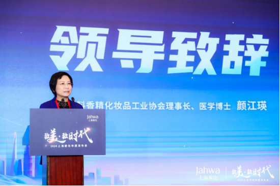 图:中国香料香精化妆品工业协会理事长颜江瑛发表致辞