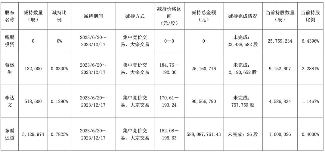 刘丽华离职公告发布当天,公司披露该减持计划期限届满的执行结果。上述股东及董监高在6月20日—12月17日通过集中竞价及大宗交易共减持公司股份7437489股,占公司总股本的1.8593%,合计减持总金额达13.69亿元。
