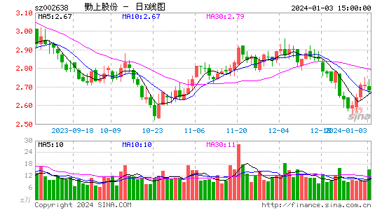 二级市场上,截至1月3日收盘,勤上股份报2.68元/股,总市值为38.75亿元。