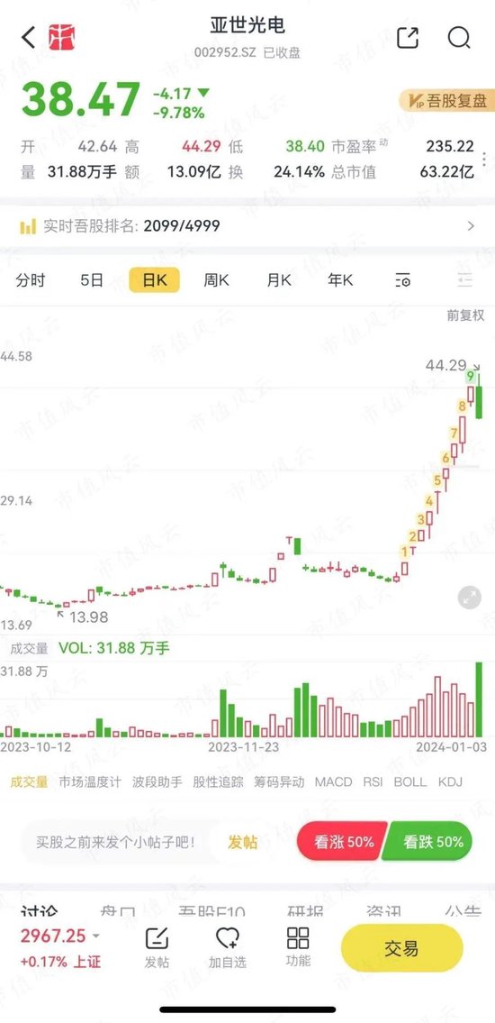 不过,很多个股的大涨却难有实际业绩支撑,涨的最凶的亚世光电就是如此。