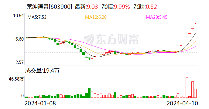 搭上黄金概念莱绅通灵收获七连板 业绩预亏重要股东减持进行中