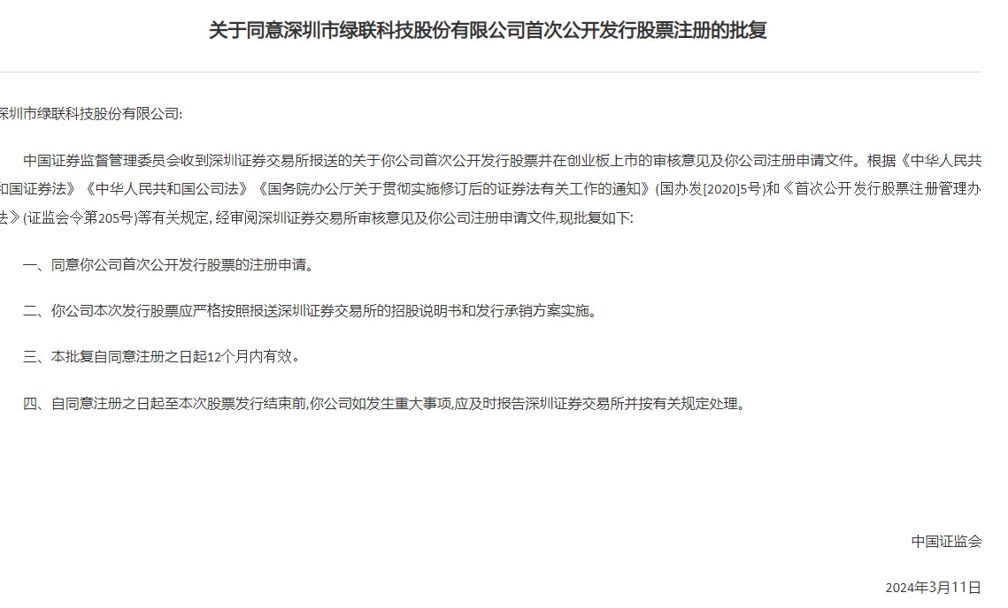 4月18日,中国证监会发布《关于同意深圳市绿联科技股份有限公司首次公开发行股票注册的批复》。据悉,绿联科技拟在深交所创业板上市,IPO保荐机构为华泰联合证券,拟募资15.0371亿元。