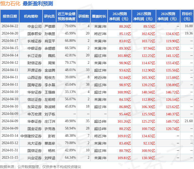 东吴证券股份有限公司陈淑娴,何亦桢近期对恒力石化进行研究并发布了研究报告《2024年一季报点评:Q1净利同比高增,新项目投产有望贡献业绩》,本报告对恒力石化给出买入评级,当前股价为15.57元。