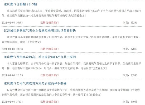 但坐拥天时地利的重庆燃气,此前却没少遭到市民投诉。