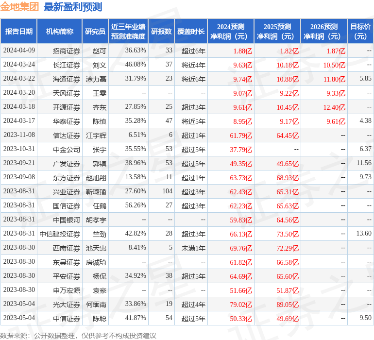 最新盈利预测明细如下: