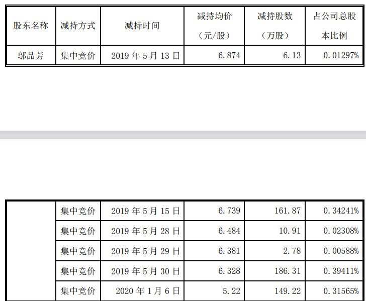 瑞财经《预审IPO》发现,邬品芳于富瑞特装辞职前,自2016年3月起至2019年5月30日,曾13次减持富瑞特装股权,合计套现金额约2.35亿元。辞职后,又于2020年1月6日减持了149.22万股。此次减持后,邬品芳于的持股比例降到了5%以下,为4.99998%。自此,富瑞特装不再公告披露邬品芳的减持动向。