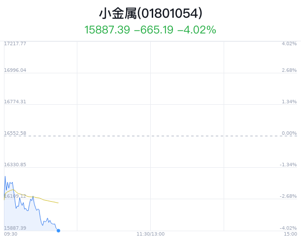 04月23日,小金属行业盘中跳水,截至10点15分,小金属行业整体指数下跌4.02%,报15887.390点。
