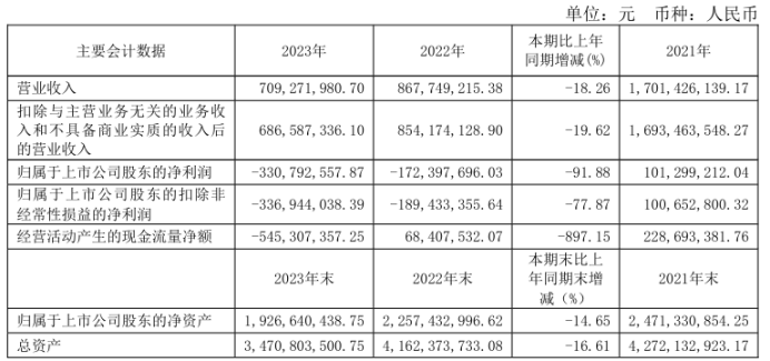 挖贝网4月20日,大龙地产 近日发布2023年年度报告,报告期内公司实现营业收入709,271,980.70元,同比下滑18.26%;归属于上市公司股东的净利润-330,792,557.87元,较上年同期亏损增加。
