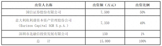 官网显示,鹏华基金管理有限公司成立于1998年12月22日,总部设在深圳,在北京、上海、广州、武汉设有分公司。目前的股东由国信证券股份有限公司、意大利欧利盛资本资产管理股份公司(Eurizon Capital SGR S.p.A.)、深圳市北融信投资发展有限公司组成,三家股东的出资比例分别为50%、49%、1%,业务范围包括基金募集、基金销售、资产管理及中国证监会许可的其他业务。