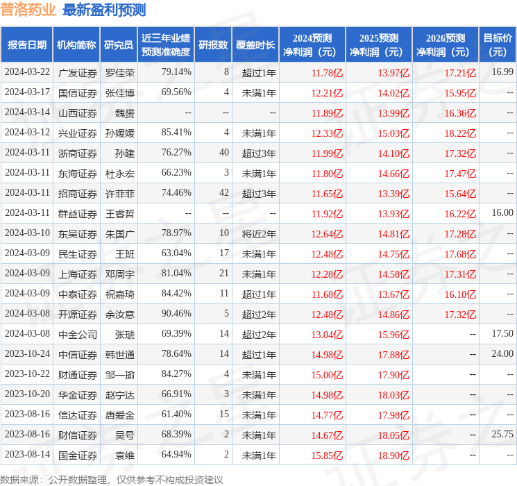我们预计公司2024-2026年摊薄后的EPS分别为1.01元、1.20元和1.46元,对应的动态市盈率分别为12.28倍、10.34倍和8.50倍。普洛药业作为我国化学原料药生产、出口的龙头企业、公司CDMO收入占比持续提升,业务结构持续优化,盈利能力提升预期明确,产品管线有望持续丰富,维持买入评级。
