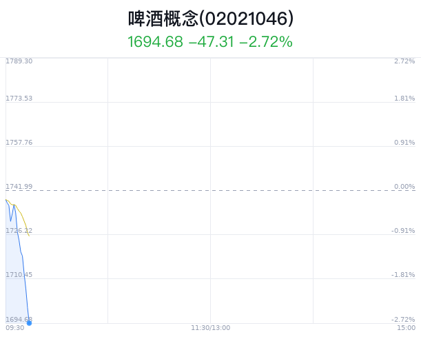 啤酒概念盘中跳水,永顺泰跌2.41%