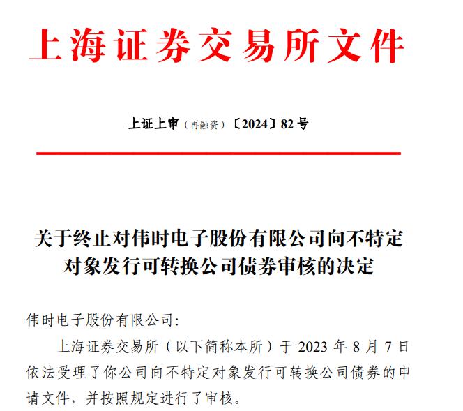 瑞财经 李兰4月15日,上交所决定终止对伟时电子股份有限公司(以下简称“伟时电子”)向不特定对象发行可转换公司债券审核。