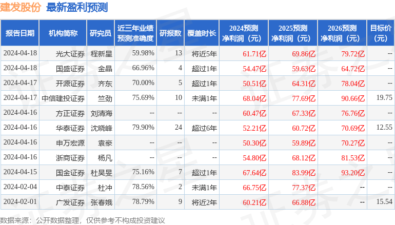 证券之星数据中心根据近三年发布的研报数据计算,华泰证券沈晓峰研究员团队对该股研究较为深入,近三年预测准确度均值为79.9%,其预测2024年度归属净利润为盈利52.21亿,根据现价换算的预测PE为5.78。