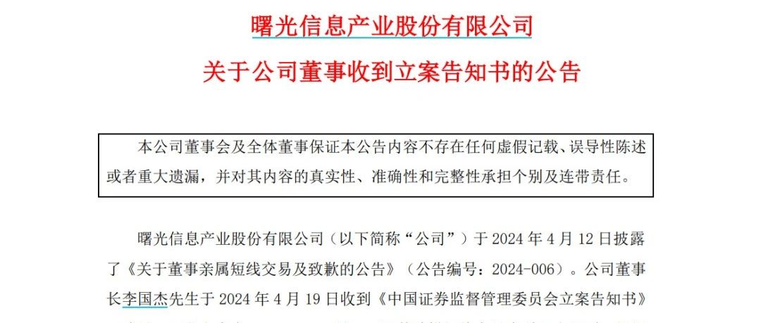证监会立案,上交所关注。浓眉大眼的中国曙光打死没想到以这样的方式刷屏,此前,中科曙光公告,81岁的董事长的爱人短线交易1.5亿获利58.9779万。彼时,凌通社就认为,这个短线交易有点奇怪。