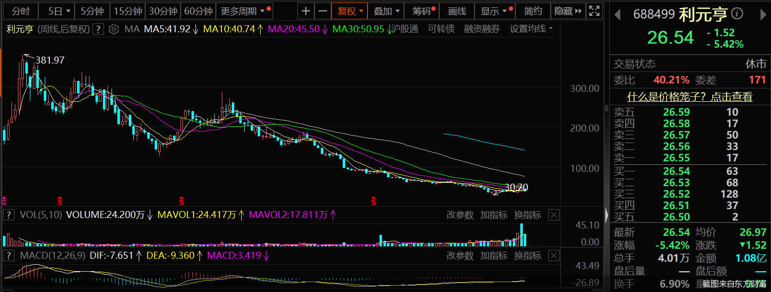 东方财富显示,以后复权形式统计,2023年至今,利元亨区间累计跌幅约为76%。截至4月19日收盘,利元亨股价报26.54元/股,总市值为32.81亿元。
