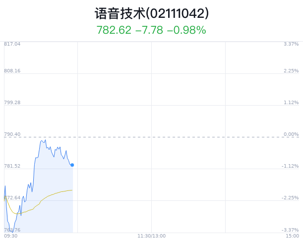 04月22日,语音技术概念盘中跳水,截至10点26分,语音技术概念整体指数下跌0.55%,报782.620点。